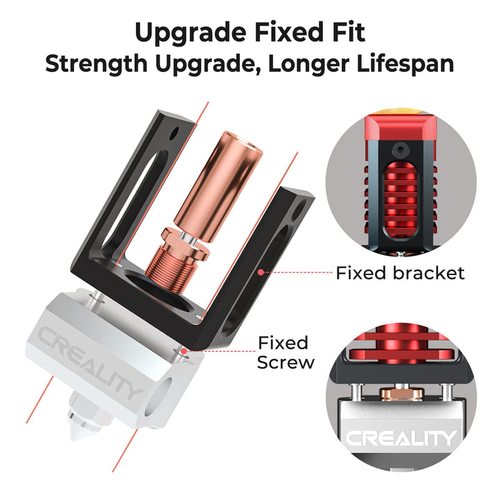 【Enhanced Structure for Efficient Heat Dissipation】Experience fast heat dissipation with the upgraded heat block, featuring a split design that reduces heat transfer for improved efficiency. Crafted from a premium copper alloy, both the heat block and nozzle boast a smooth inner wall with a roughness of Ra0.3, ensuring enhanced print quality like never before.